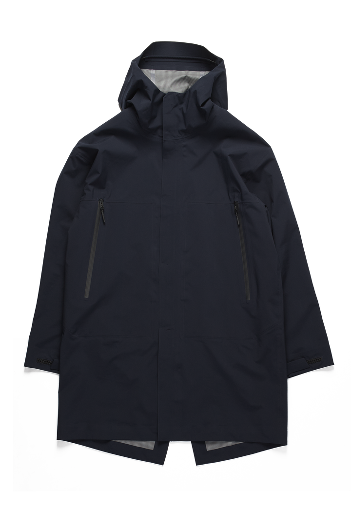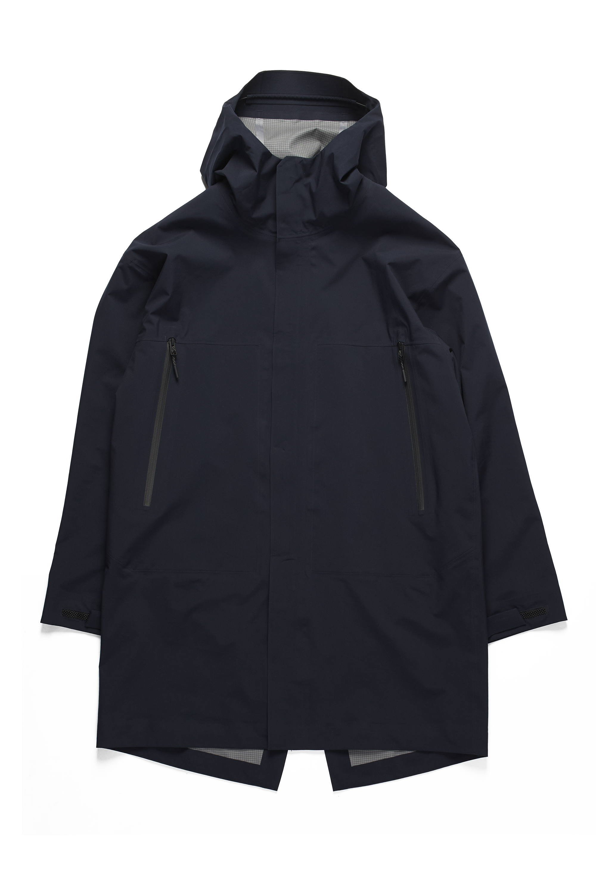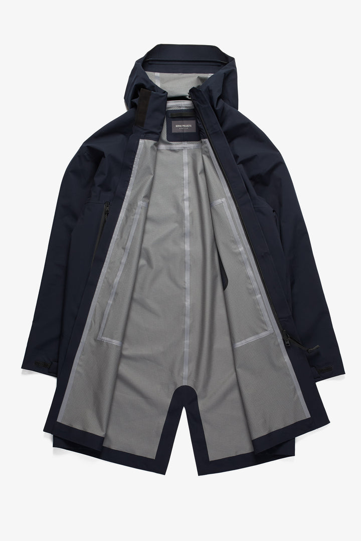The 3L Waterproof M-51 Parka is a waterproof fishtail parka. Featuring a slightly oversized silhouette, and articulated sleeves. Finished with side entry pockets, and moulded velcro cuff trims make adjustment secure and easy. It is compatible with all Pertex midlayer styles offering optional four-season functionality. This garment uses proprietary Norse Projects technology. Combining lightness and performance. Constructed in a light weight plain weave face, using recycled polyester. With a recycled grid structure backer and PFC free DWR. The garment is fully seam taped to ensure waterproofness.