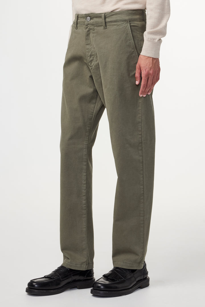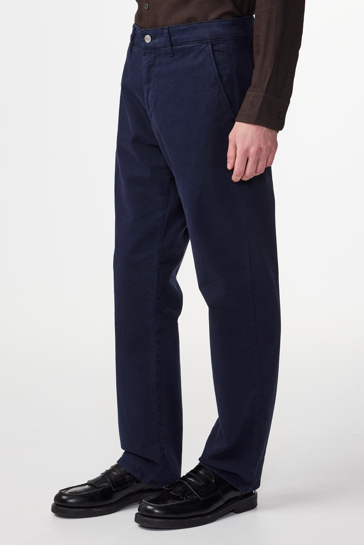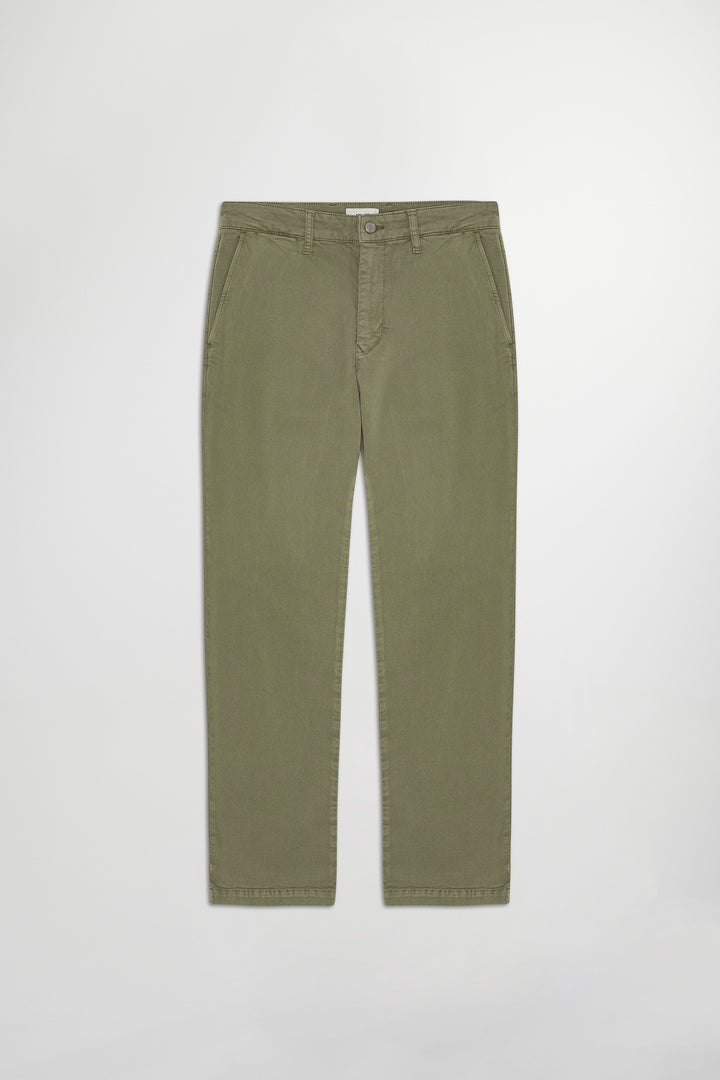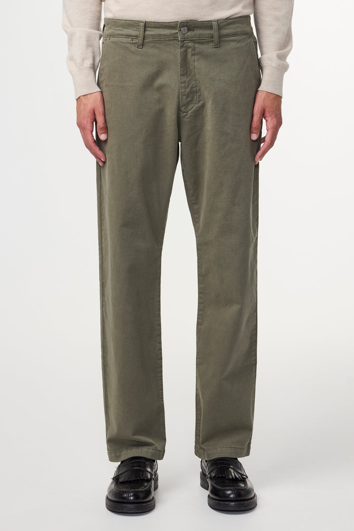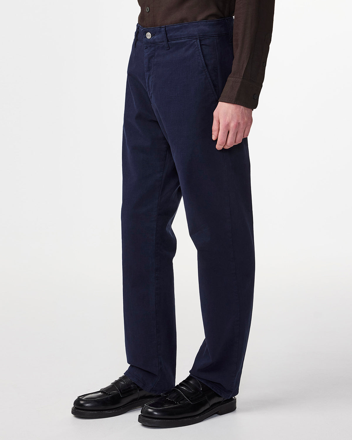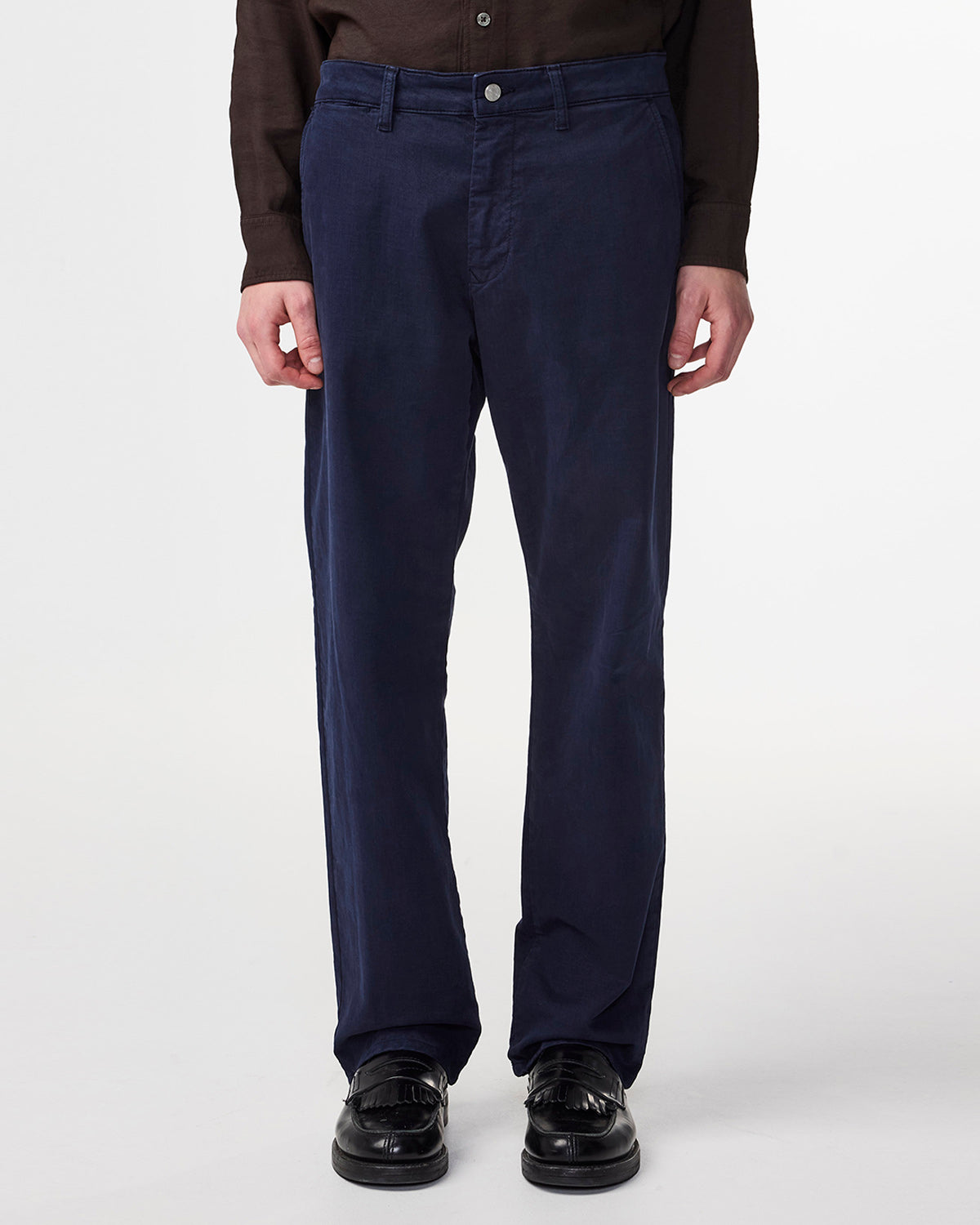 Chinos crafted in organic cotton-blend twill with a touch of stretch for added comfort. Garment-dyed for a soft, peachy handfeel and finished with embroidery details and a classic jeans button closure.