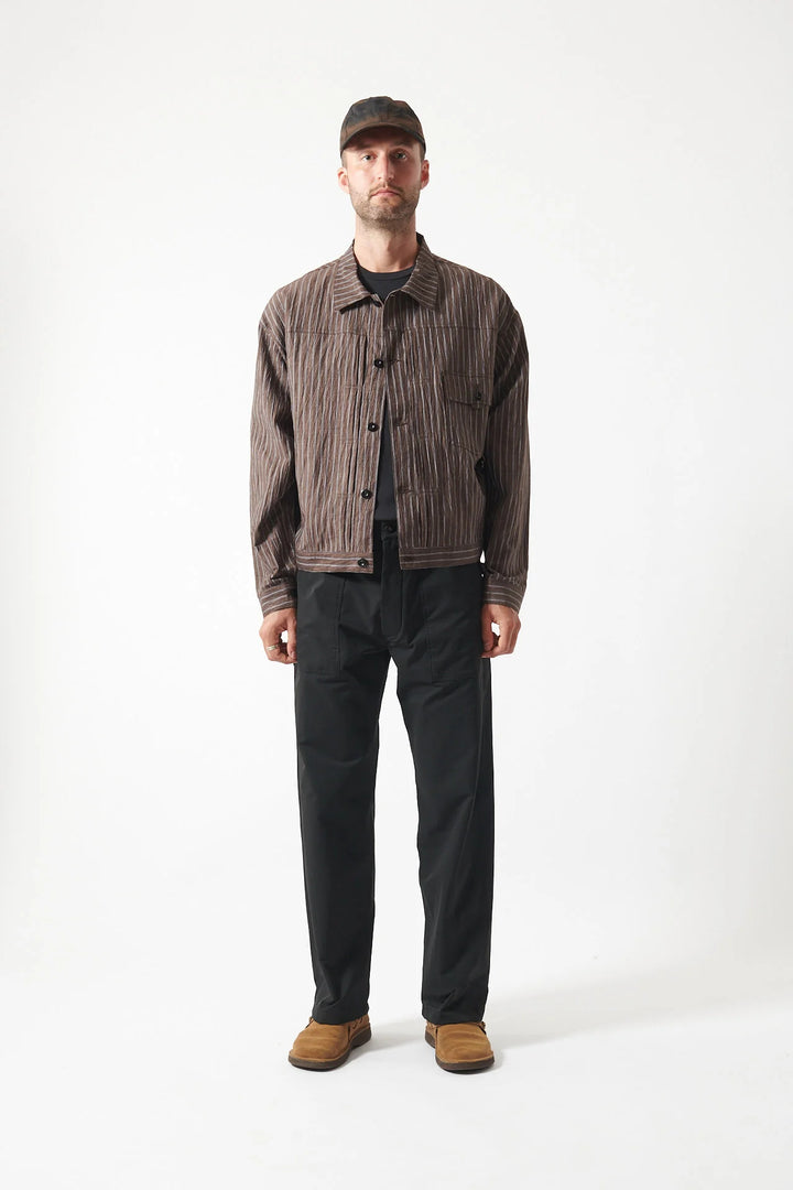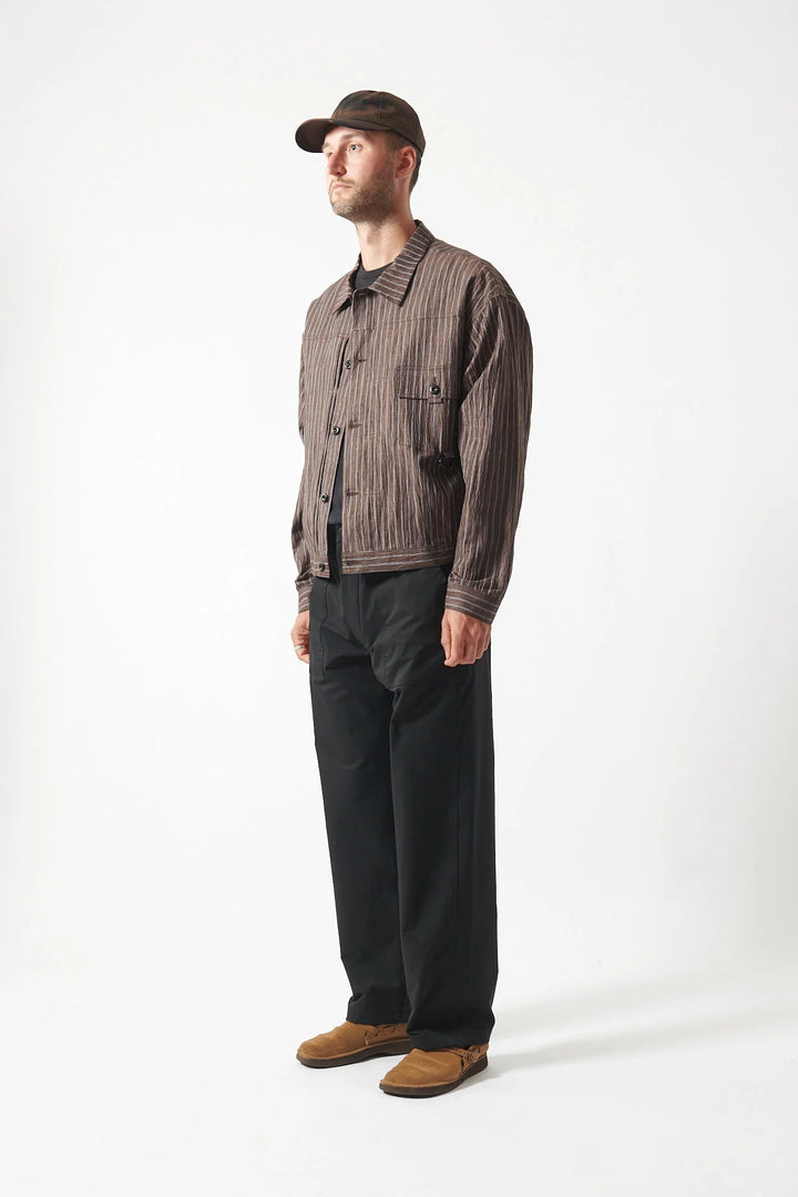 A relaxed technical lightweight overshirt originating from a 50's military shirt from the archive. Fabricated in a japanese 20 denier light ripstop. The fabric utilises a light stretch ripstop construction, with super fine yarns to create a comfortable and durable fabric with excellent breathability. Finished with a custom wash to give a natural character to this technical textile.