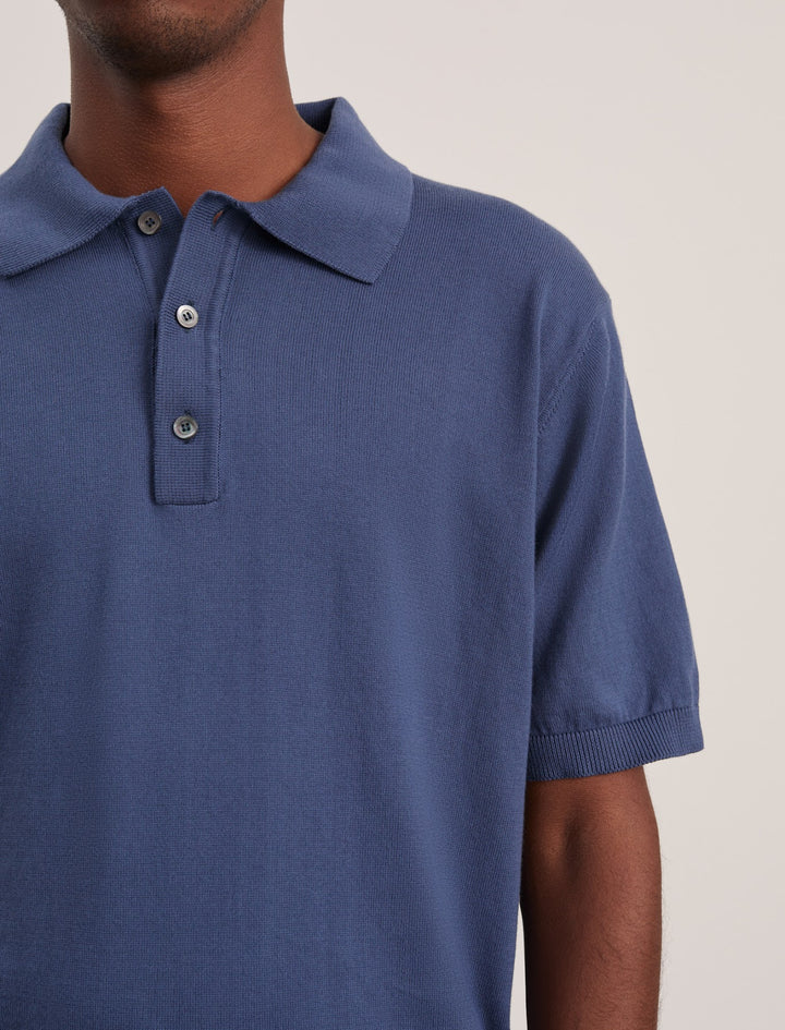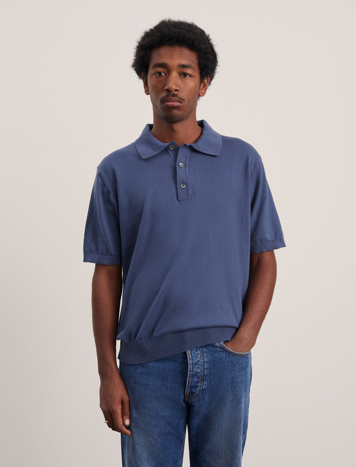 A clean lightly knitted short-sleeved polo shirt. Made from cotton yarn of the highest quality, suitable for both the warmer days and colder evenings, at the same time soft and comfortable.