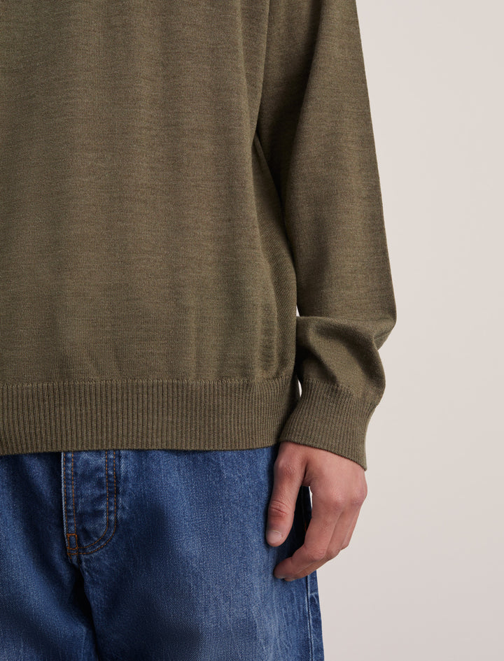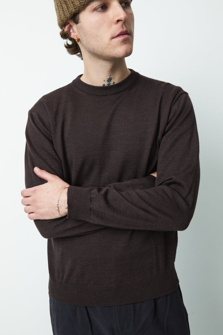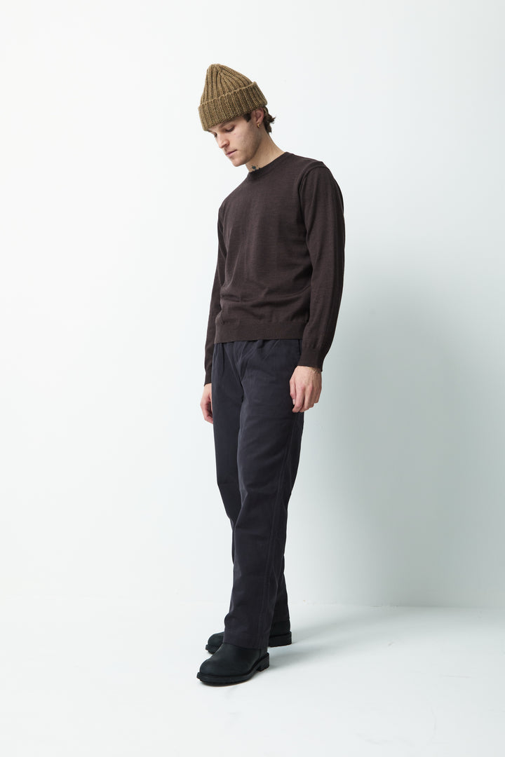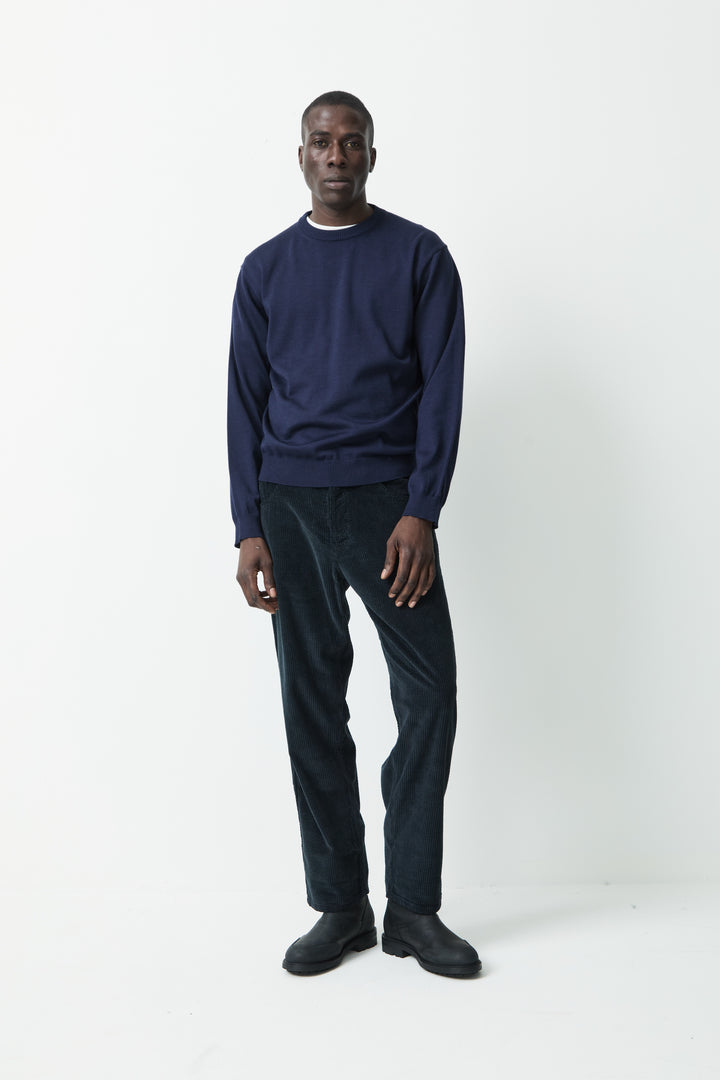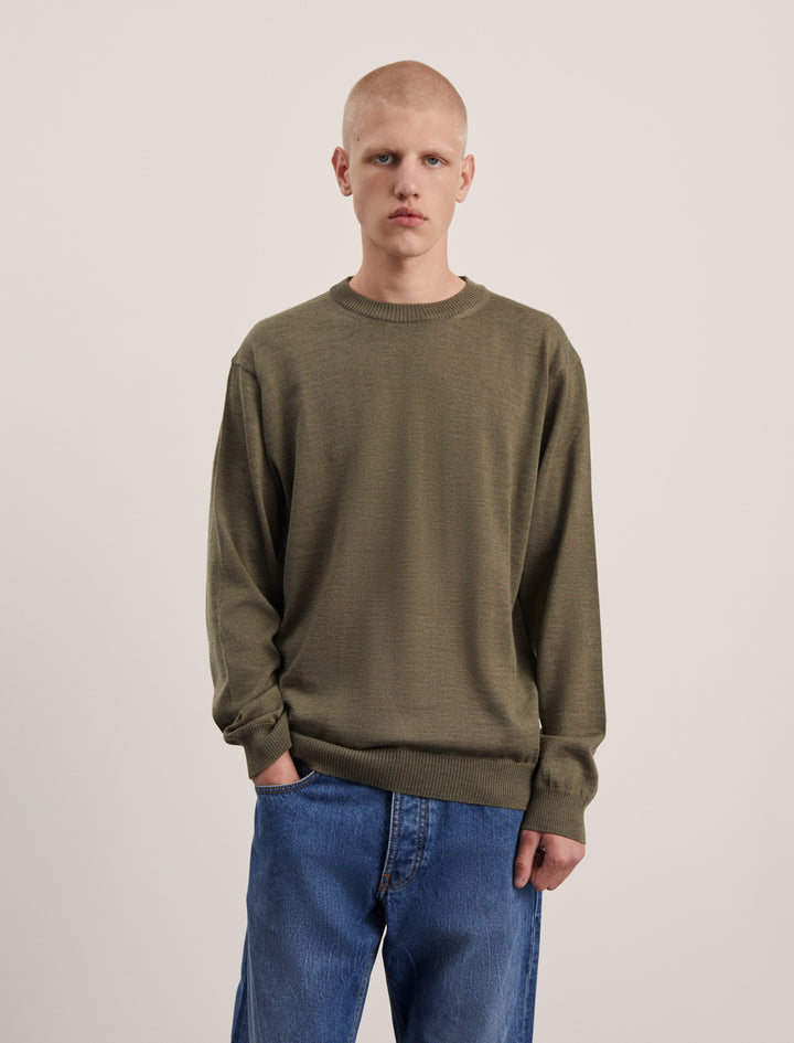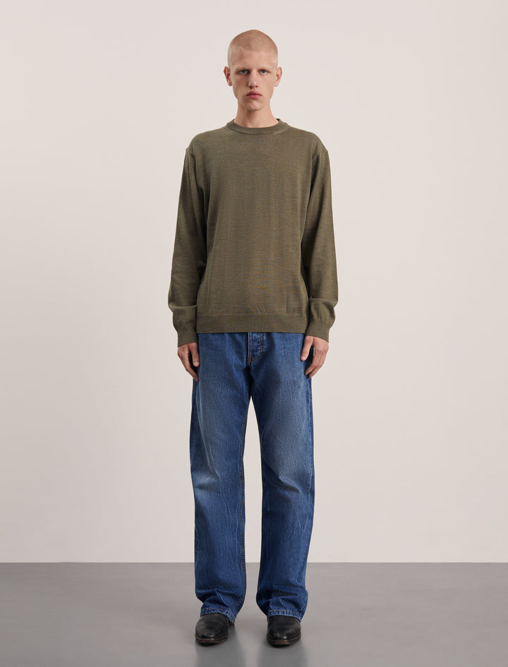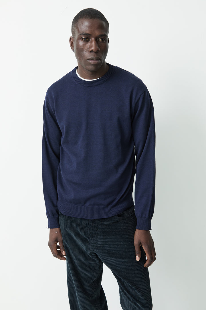 The Sweater 5.0 is a classic crew-neck sweater, made in a fine gauge and with references from a sweatshirt. The crew-neck is knitted from the extra-fine merino wool of the highest quality, both suitable for the warmer days and colder evenings and at the same time soft and comfortable.