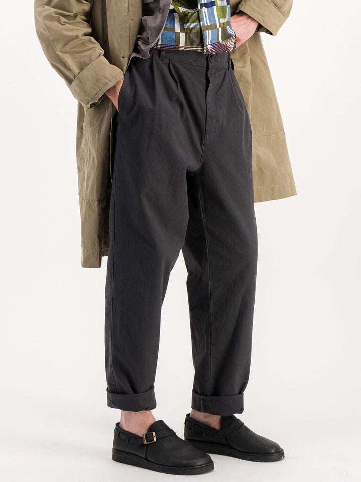 Everyday trousers in herringbone cotton, with a loose fit and a slightly tapered leg to the ankle.