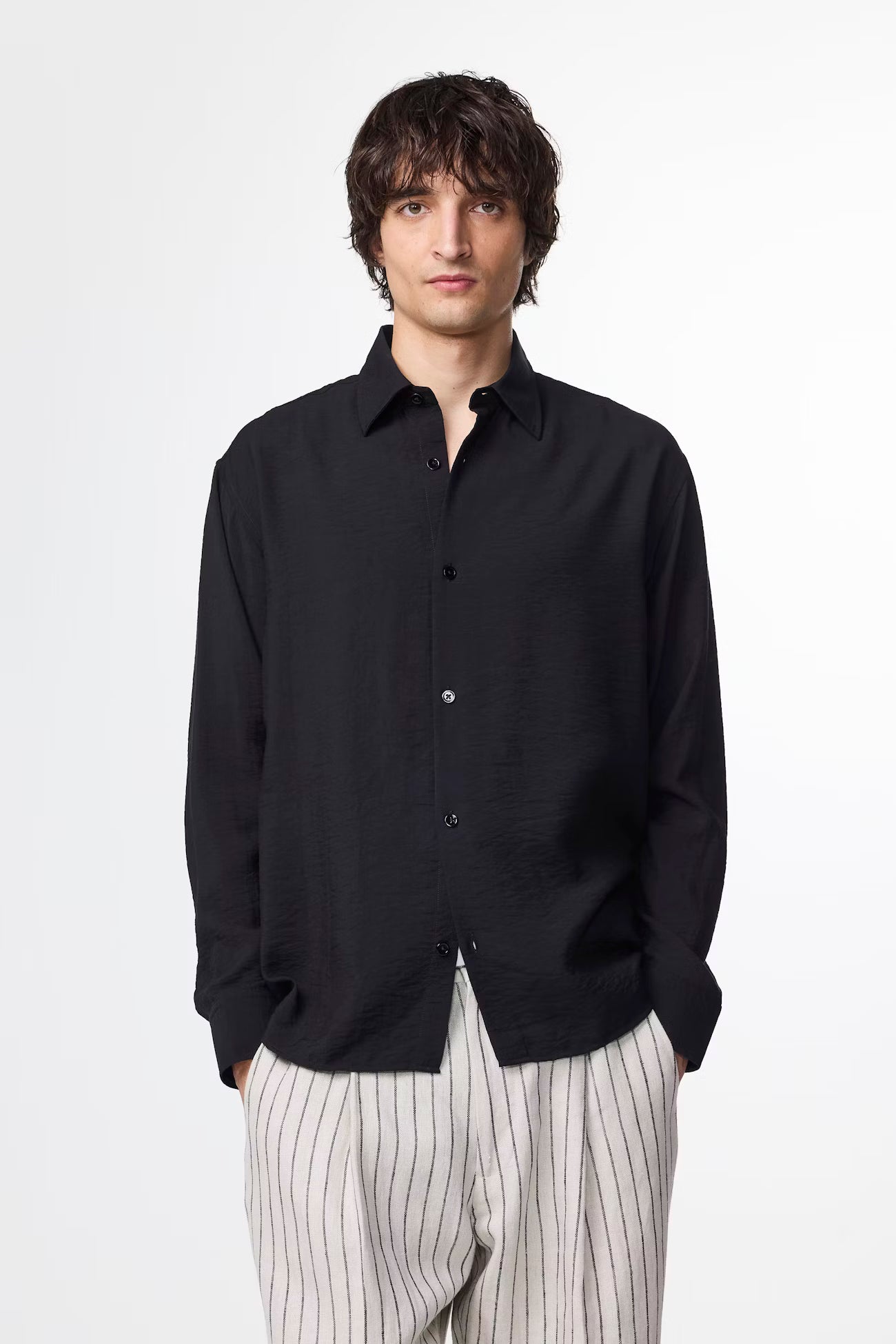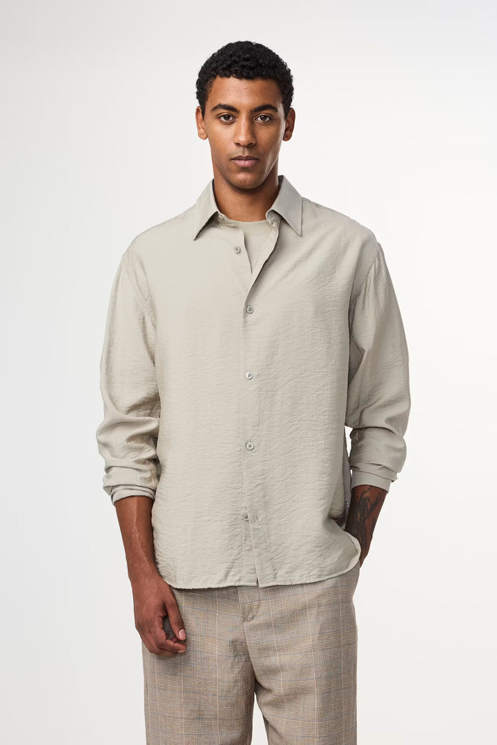 Button-up twill shirt crafted in a crisp, lightweight TENCEL™ Modal blend, topped with Mother-of-Pearl buttons.