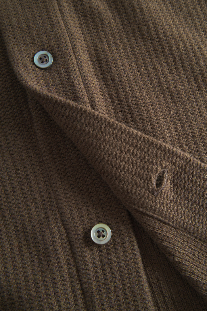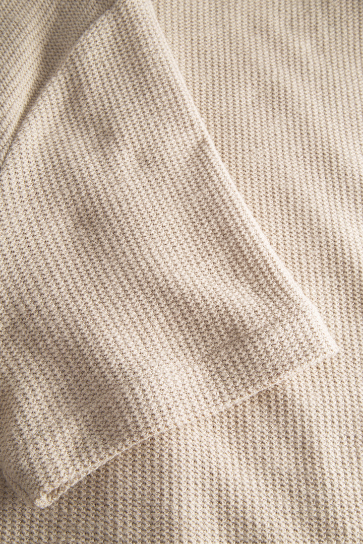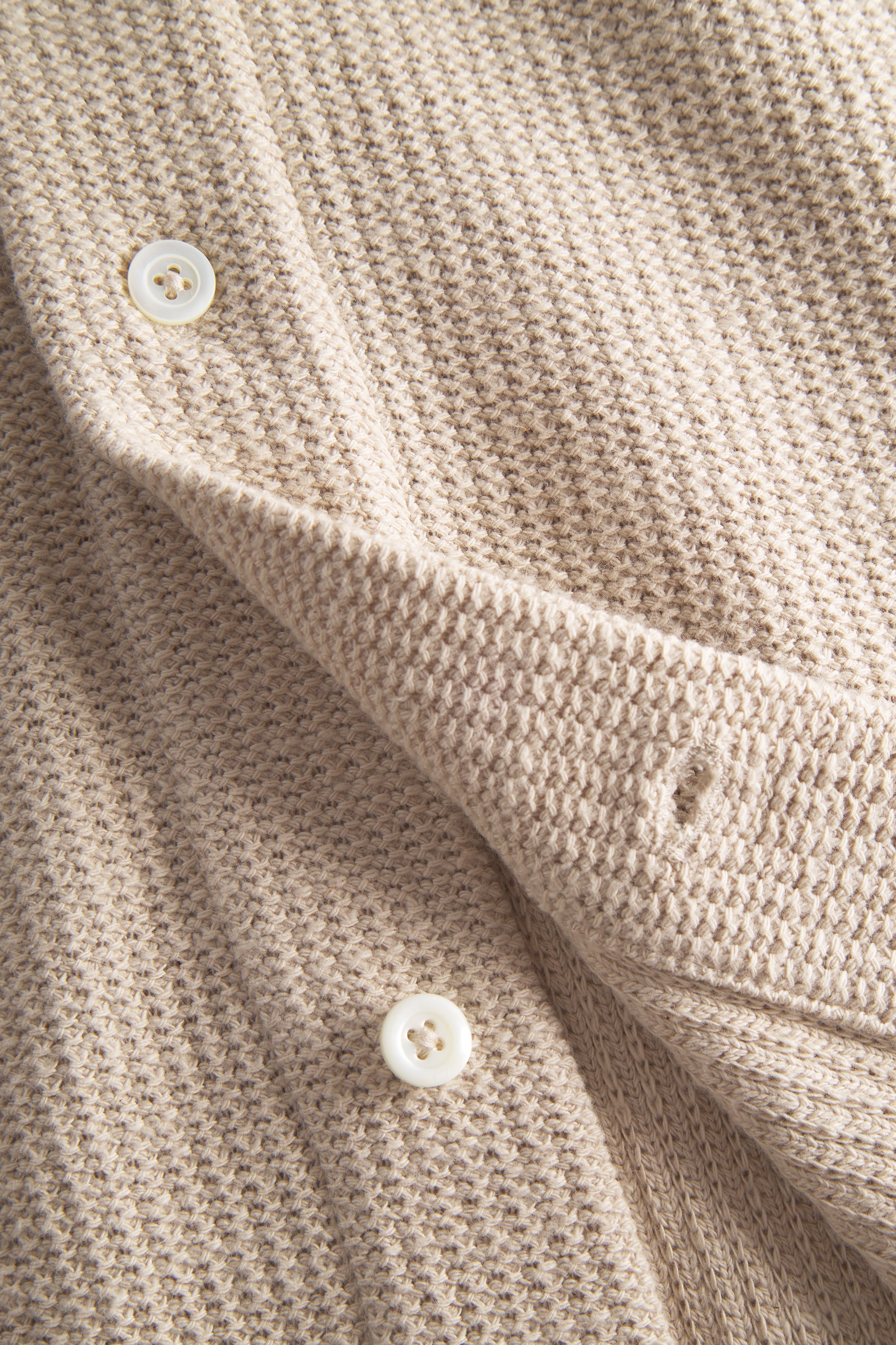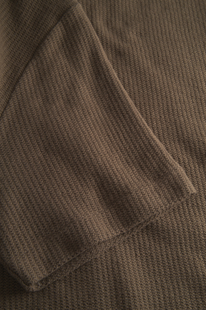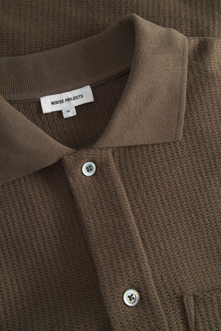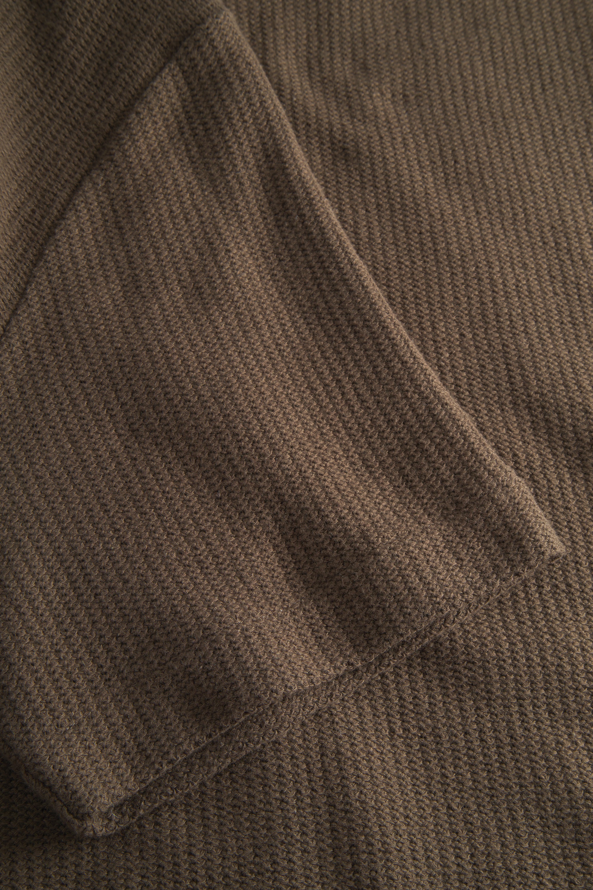 A relaxed fitting short sleeve shirt cut from a heavyweight jersey with a breathable open structure. It features a knitted collar, a chest pocket and button through placket.