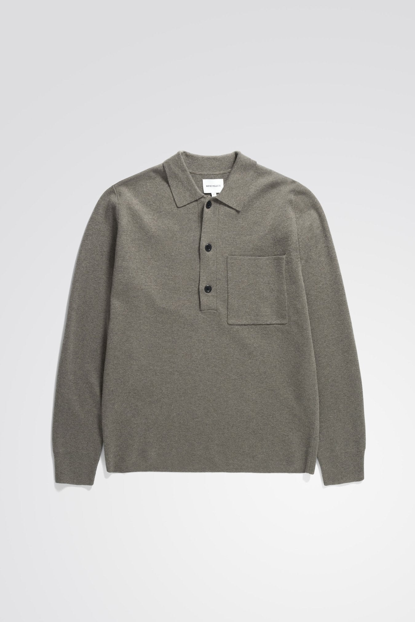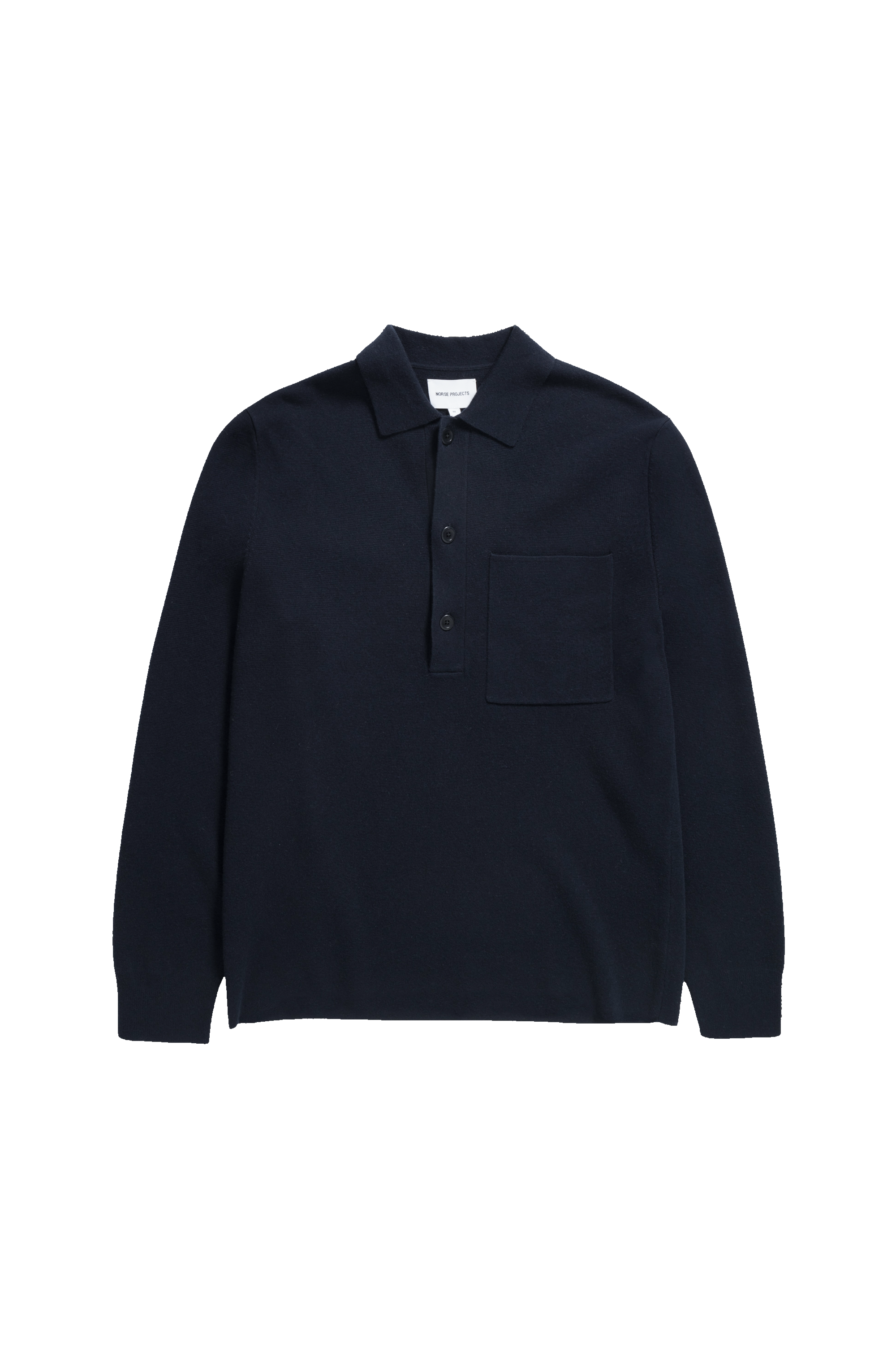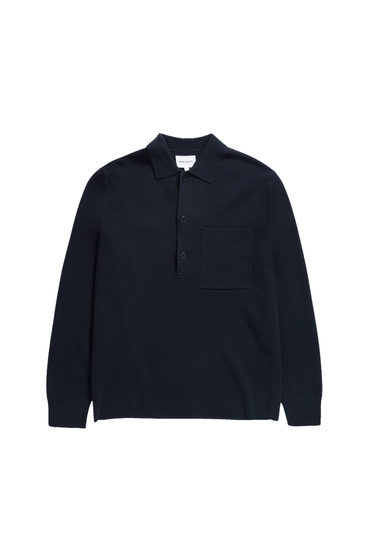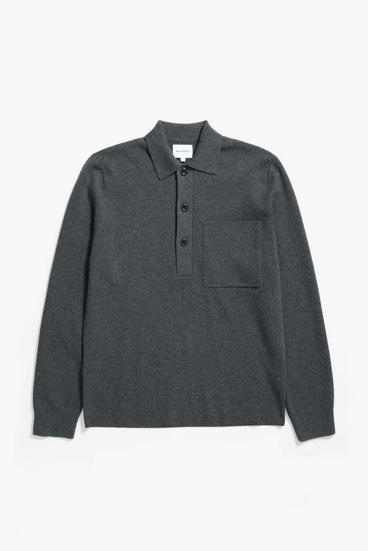 A polo knitted in a merino wool/cotton blend in a compact milano stitch. The milano stitch is a high density knit with characteristics closest to woven fabric. It has an uneven, structured surface yet both sides of the knit have the same stitch appearance. The two plain courses of full milano reduces most of the width way elasticity and as a result, full milano has a much better dimensional stability compared to other knit structures. The style is constructed with raglan sleeves and finished with pockets at the front, self-start hem and ribbed cuffs. It features a milano knitted collar and a full zip at center front.