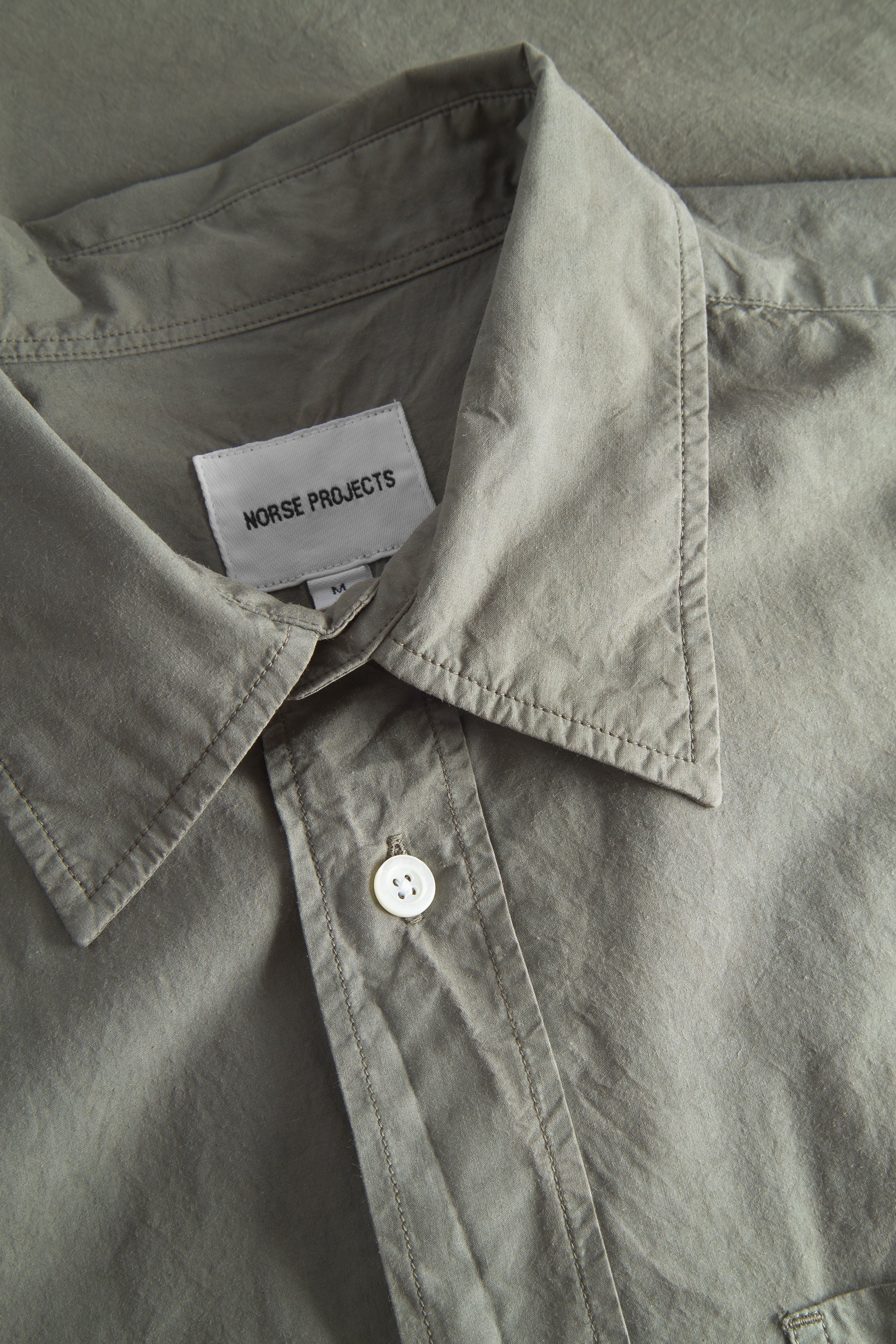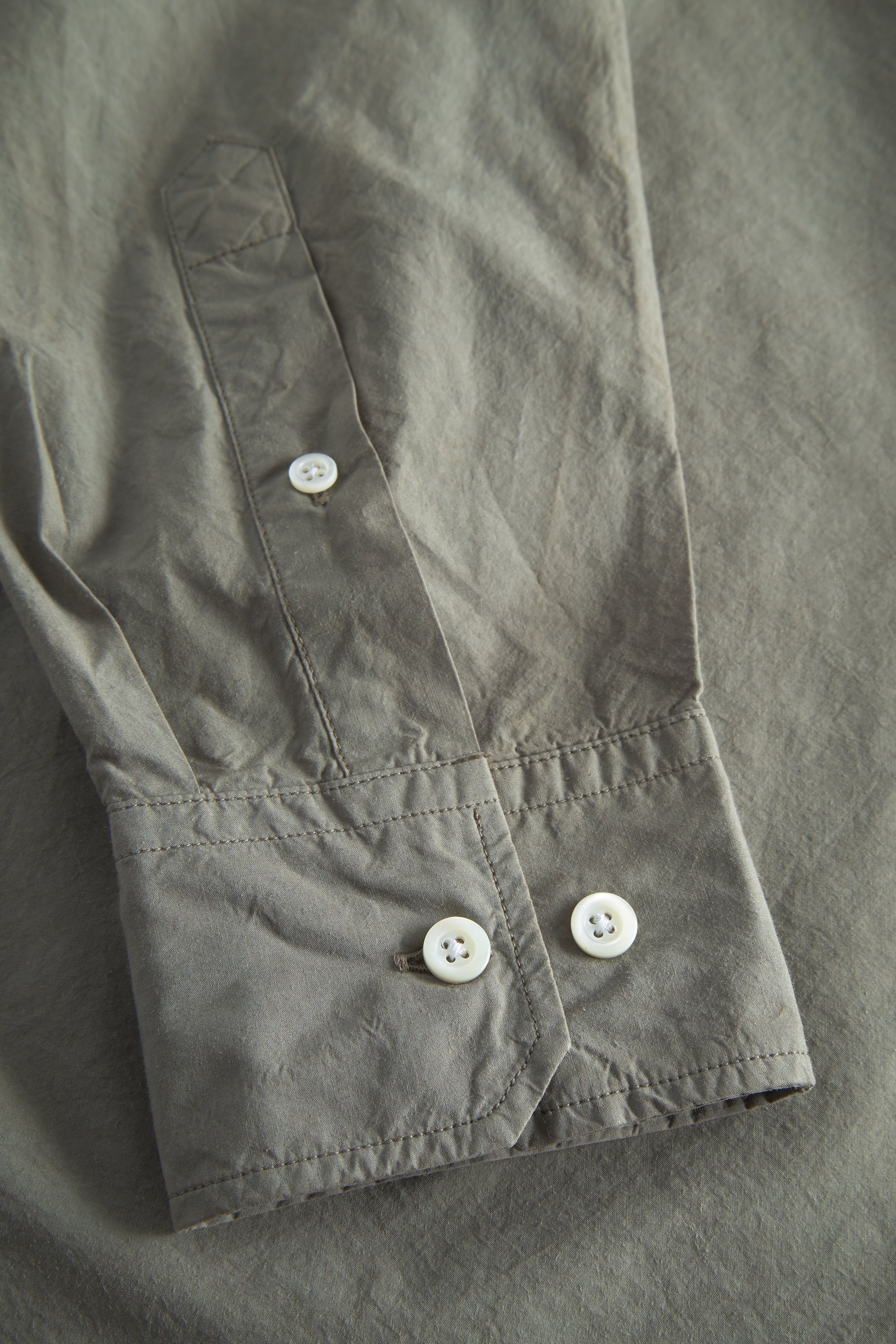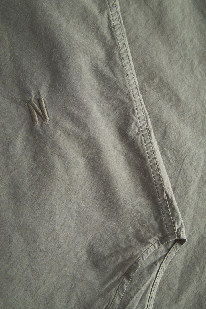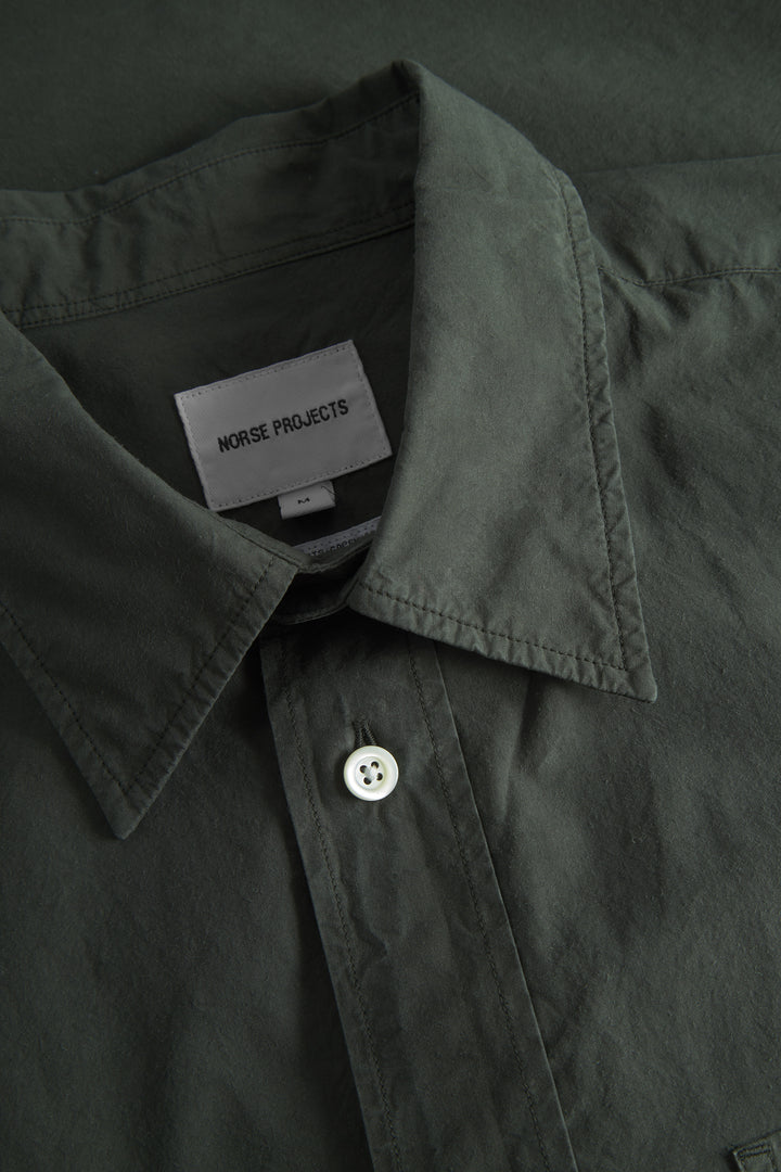 An oversized fitting shirt, with a wider body cut from a crisp Tencel® blend poplin. This shirt is garment dyed in a way that achieves a distinct softened hue, and an effortless look. Features two fatigue chest pockets, box pleat at the back, shaped hem and mother of pearl buttons.