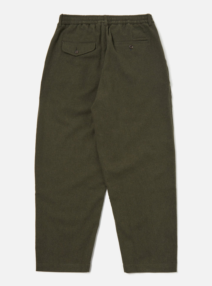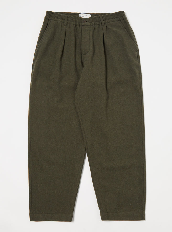 Single pleat front, wide leg trousers with a slight taper. A fuller and larger shape when compared to our Pleated Track Pant.