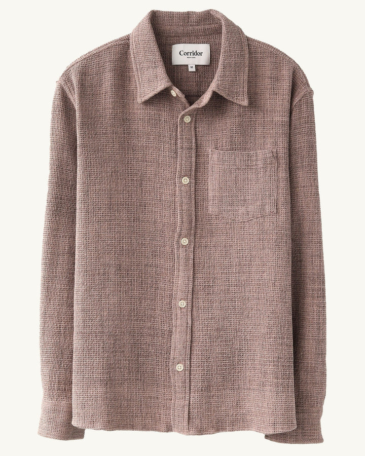 A softly lived‑in shirt with personality. Waffle‑knit 100% cotton is pigment‑dyed and garment‑washed for a soft, dry hand and tonal depth. A relaxed essential - texturally rich, inherently comfortable, intentionally crafted.
