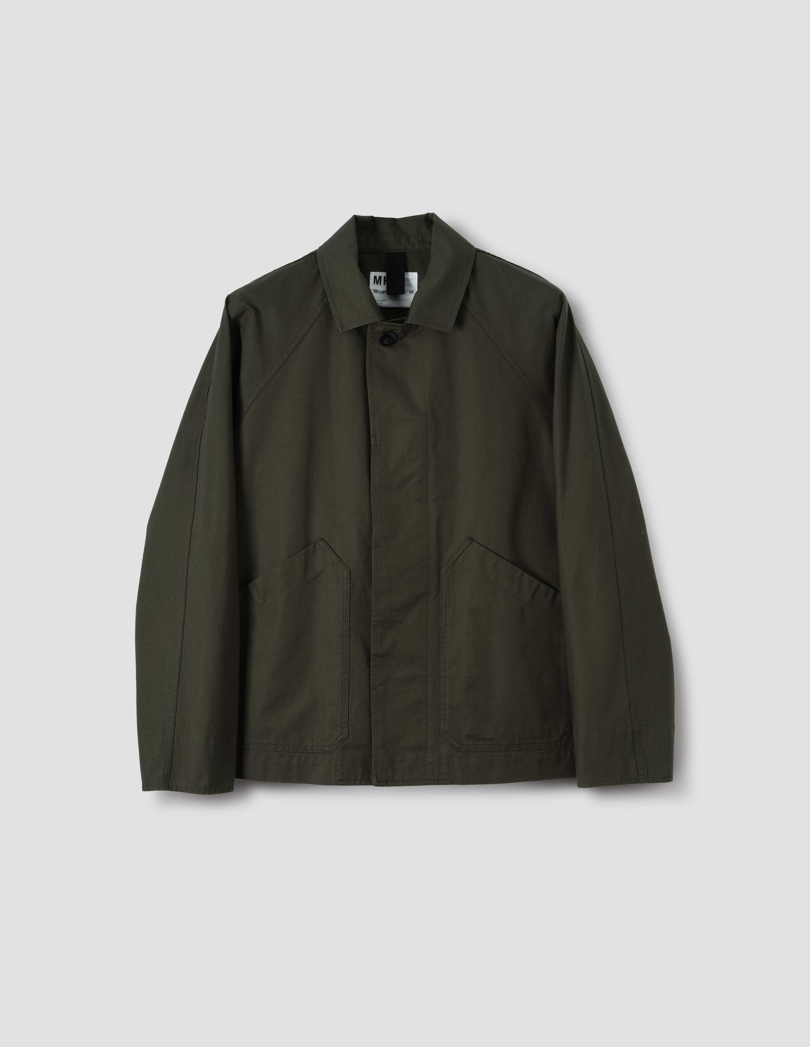 This compact cotton canvas jacket features a relaxed cut with slant patch pockets and concealed fly placket. Fabricated in British cotton plainweave.