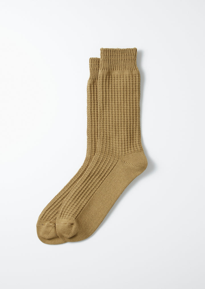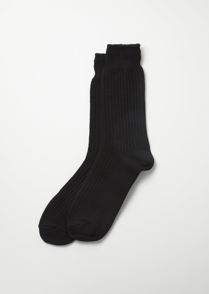 This sock features traditional thick waffle fabric, while the fabric used on the sole is smooth and plain for extra comfort. With just the right amount of thickness, the socks can be worn with any type of shoe throughout the year.