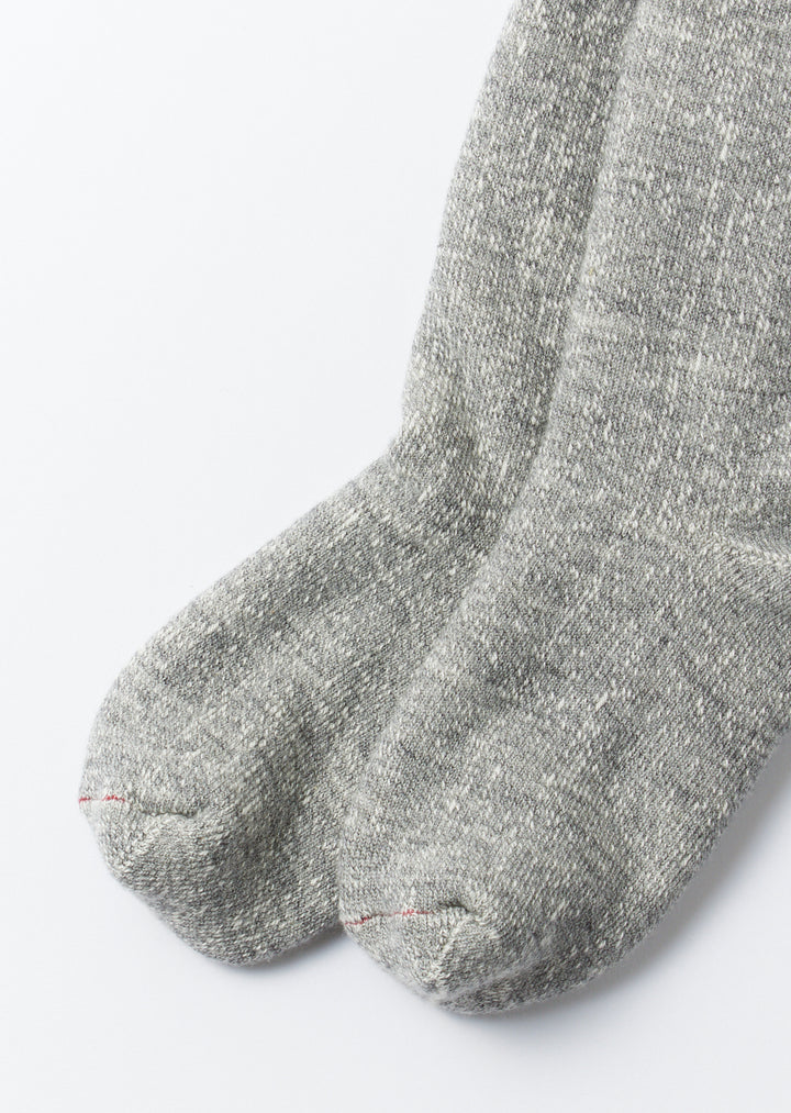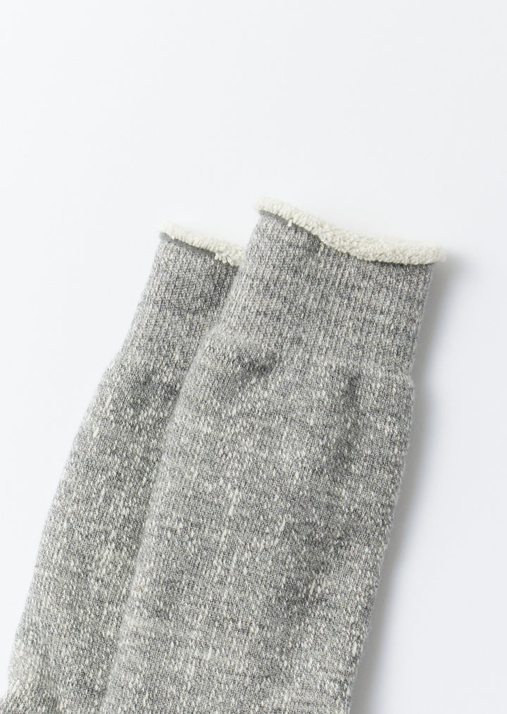 Knitted with naturally coloured organic cotton (Chamen) while maintaining shape and comfort. The fabric feels like a soft sweatshirt, while the design is inspired by chunky mountaineering socks. This sock features merino wool on the surface and undyed organic cotton fabric as the lining with a napped surface for a soft and fluffy feel.