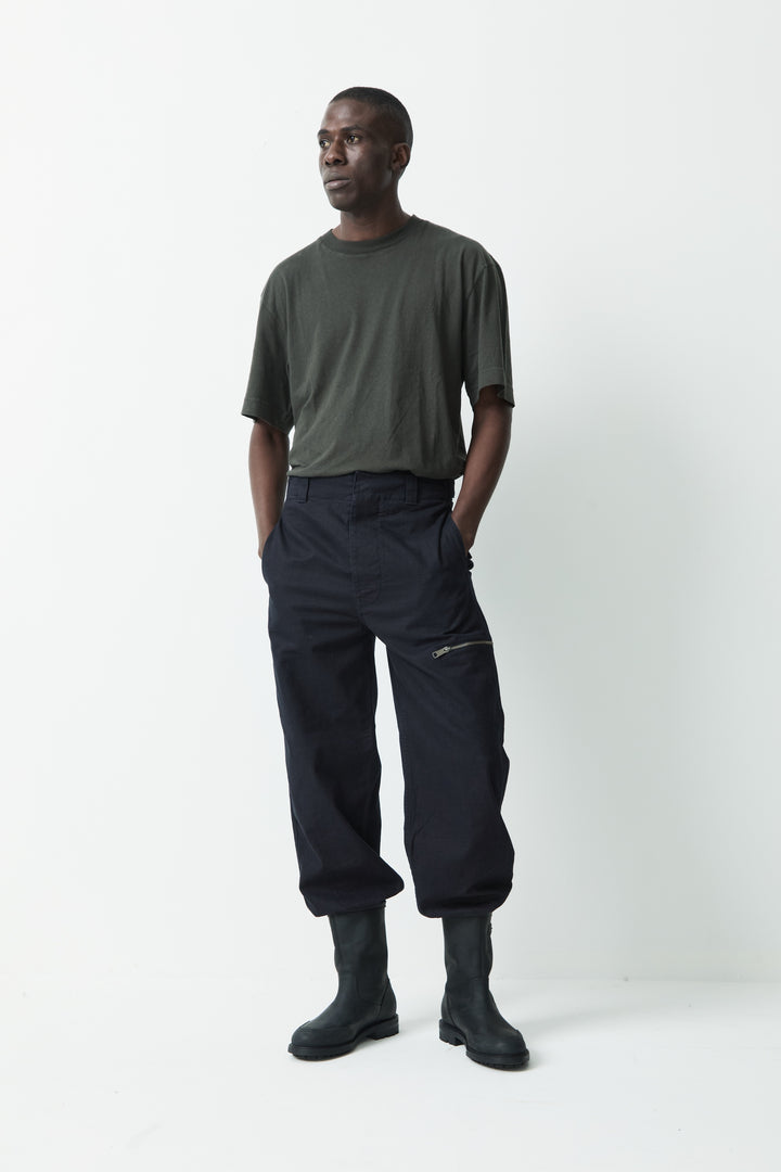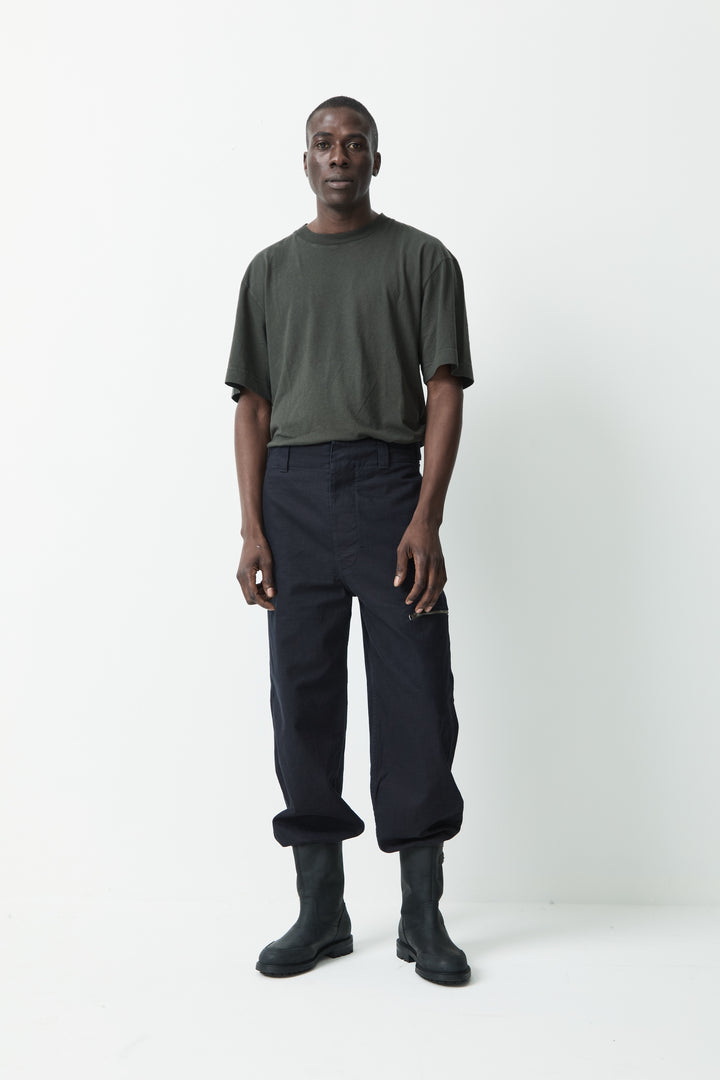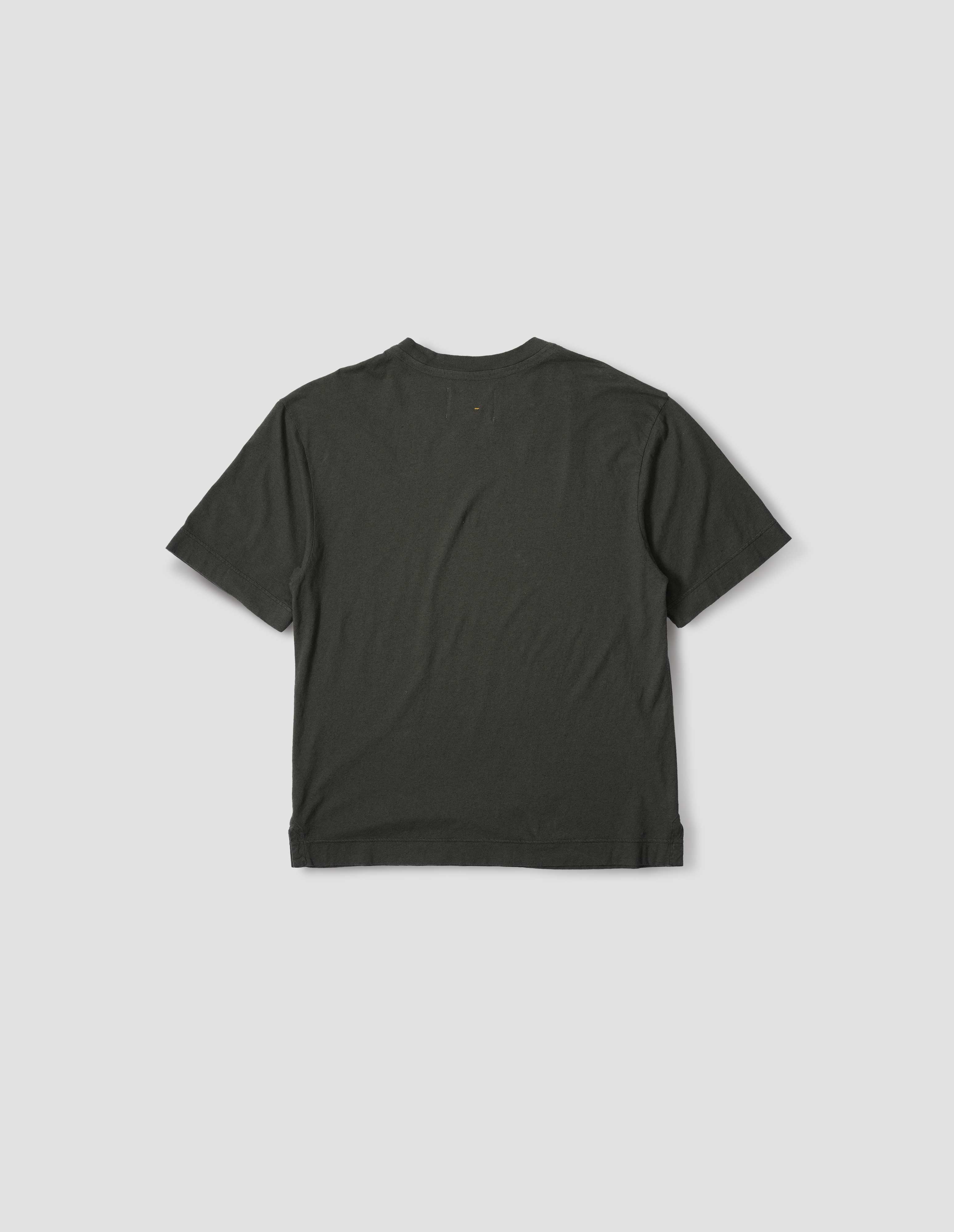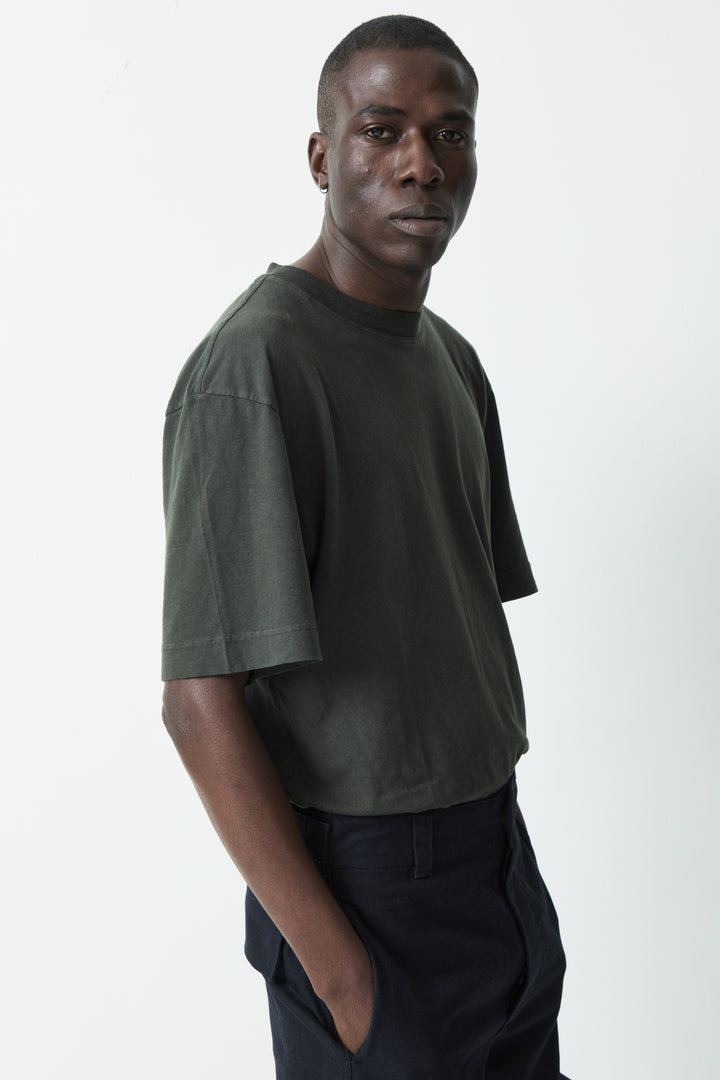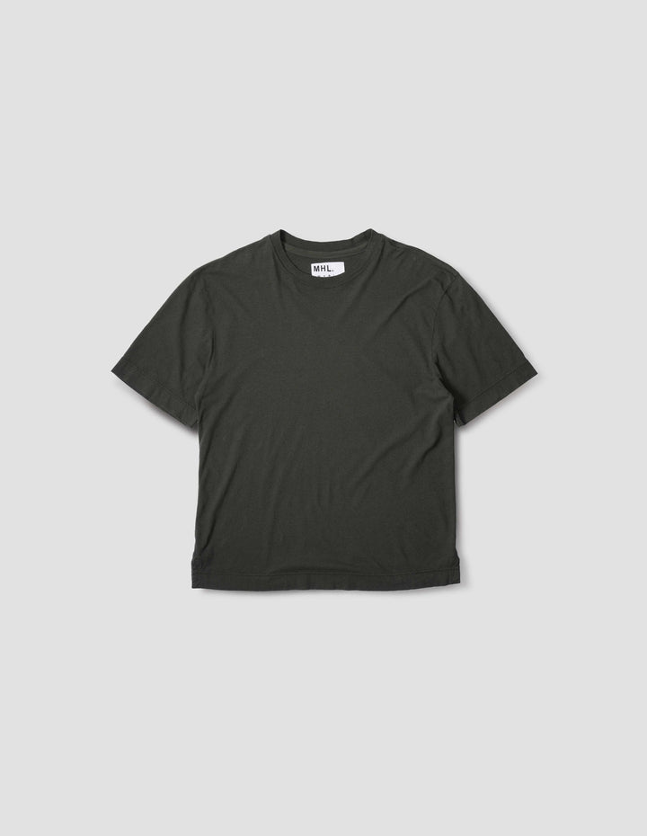 A core MHL. design, the Simple T-shirt has a relaxed, boxy cut and is fabricated in lightweight cotton linen jersey with a dry hand feel. The style features herringbone tape detailing inside the neck and side split hem. This garment is made from organic cotton and linen. Variation in the appearance of the fabric is characteristic of the natural fibres and finishing method.