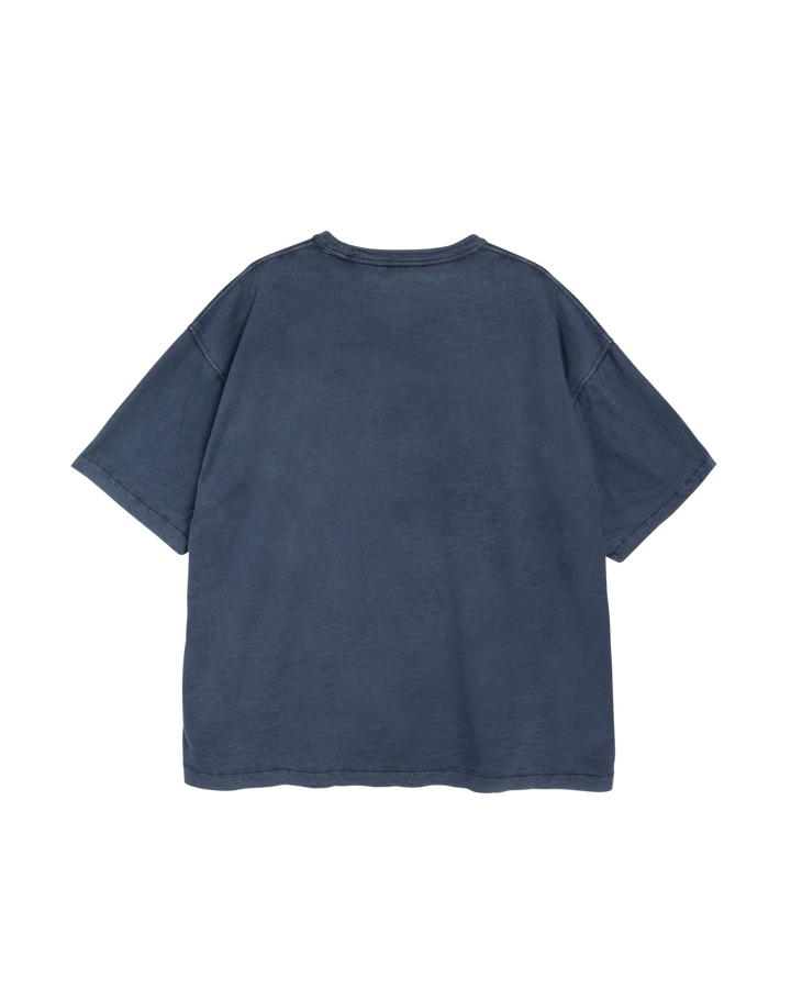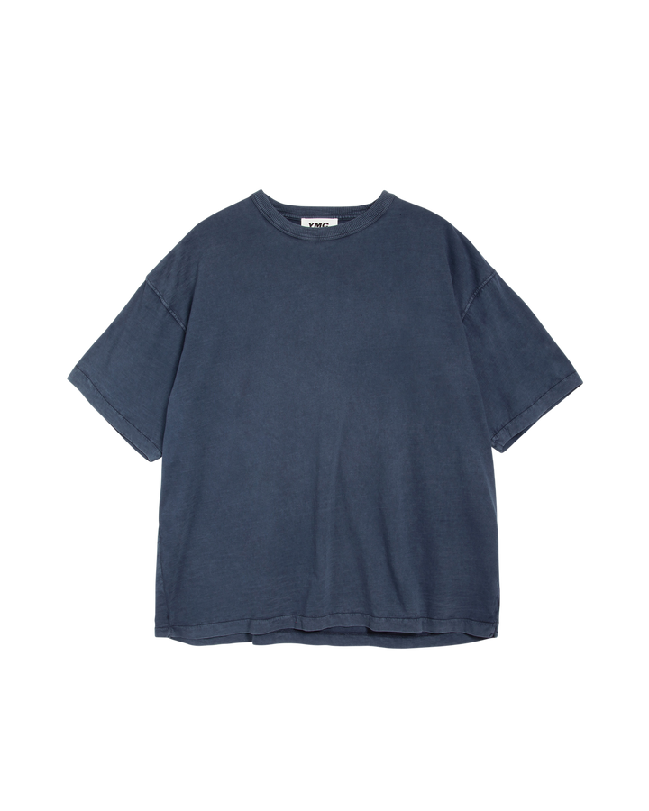 An oversized unisex T-shirt crafted in a soft lyocell-cotton jersey, designed with a bound ribbed neckline and subtle side seam vents for a relaxed, breathable fit.