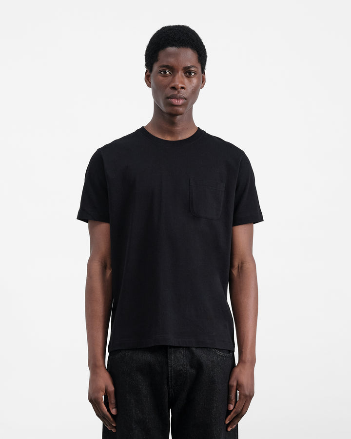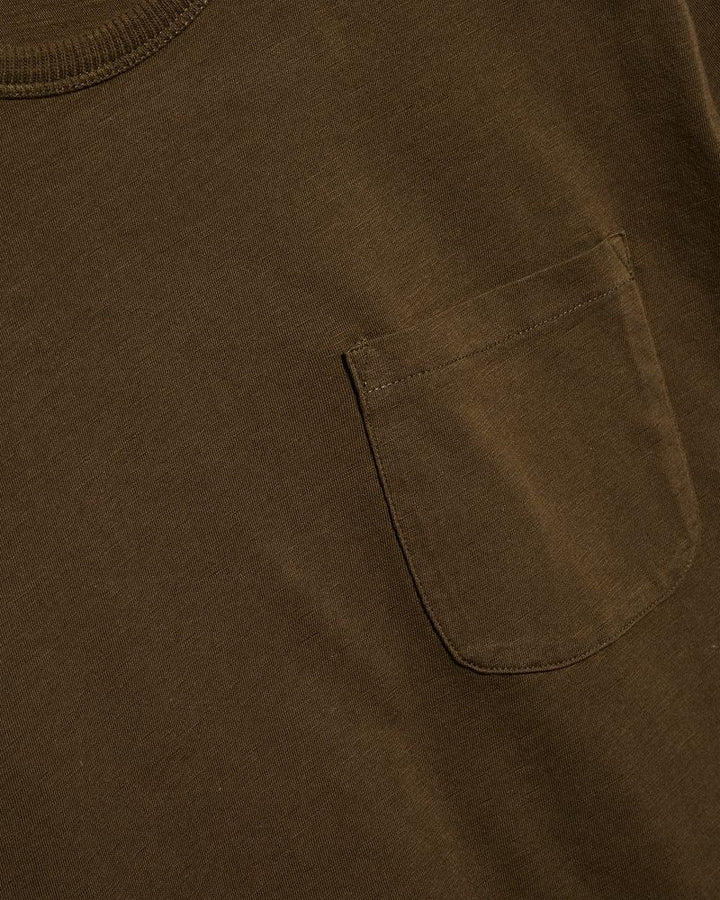 A Slim fit t-shirt made from organic cotton. It features a ribbed crew neckband with a patch pocket at chest